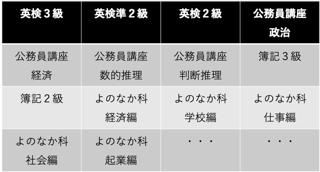 | 英検3級 | 英検準2級 | 英検2級 | 公務員講座 「政治」 |
